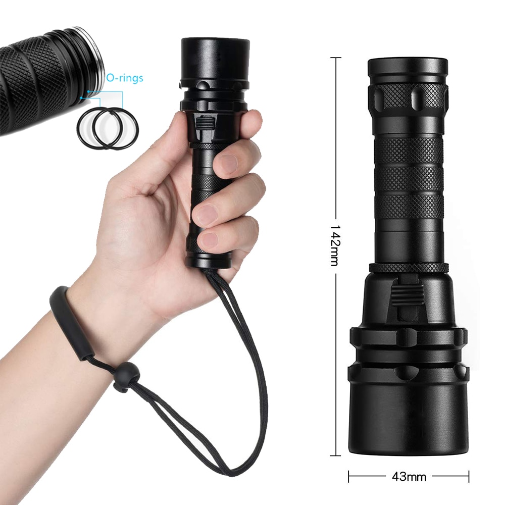 At the heart of The Omega Diving LED Flashlight lies a powerful illumination source that will light up your world like never before. Emitting a dazzling 1600 lumens of intense light, this flashlight banishes darkness and reveals hidden wonders with remarkable clarity. With a lighting distance spanning 100 to 200 meters, you can confidently explore vast expanses, peer into crevices, or signal for help when you need it most.